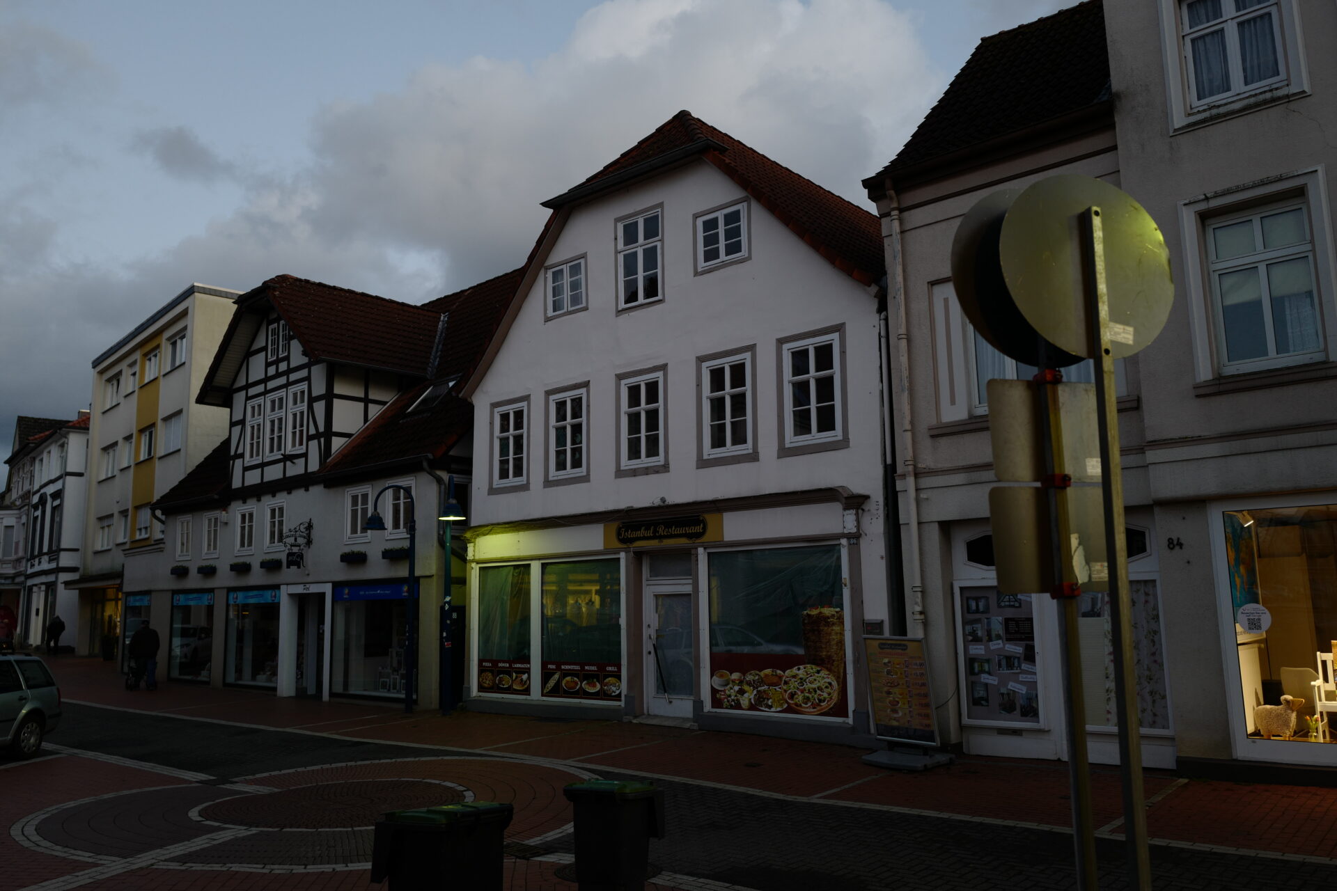 Die Lagenser Altstadt in der Dämmerung. Lage hat eigentlich alles. Eine Altstadt mit Fußgängerzone, eine „Stadt“ drum herum, einen Fluß (die Werre), viele Ortsteile und Industrie. Zu sehen sind wenig Menschen, etliches an Leerstand und beim Durchstreifen der Strassen erzeugt es bei mir ein Gefühl von „nicht so richtig hier zu sein“.